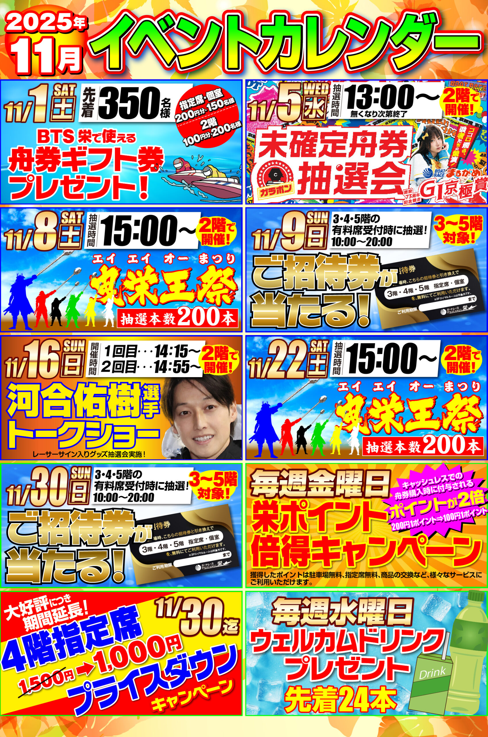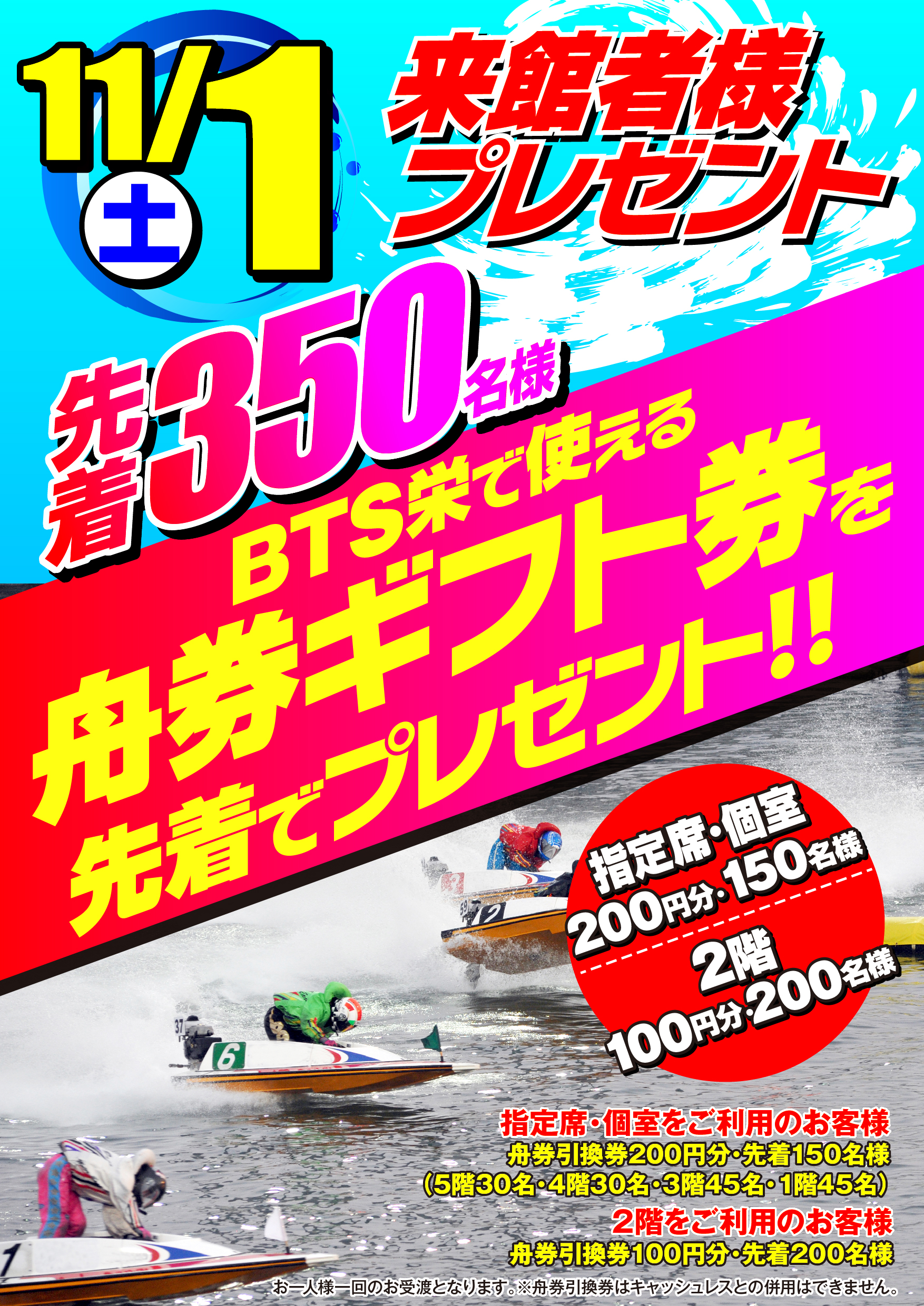*抽選会の参加には、BTS栄でご購入いただいた未確定の「舟券・キャッシュレスレシート」1,000円分をご提示ください。