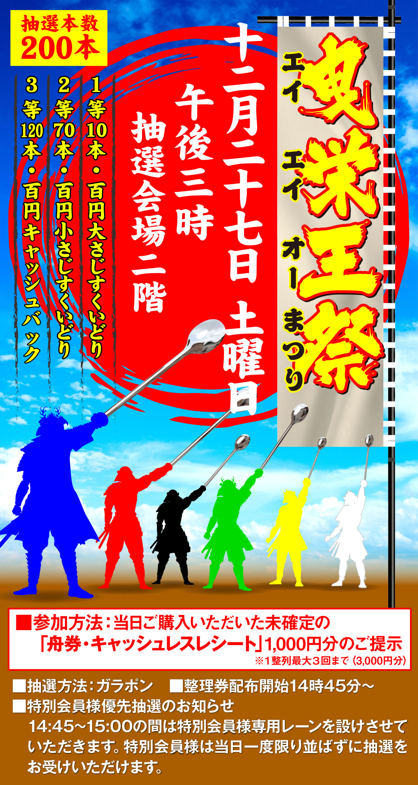 *抽選会の参加には、BTS栄でご購入いただいた未確定の「舟券・キャッシュレスレシート」1,000円分をご提示ください。